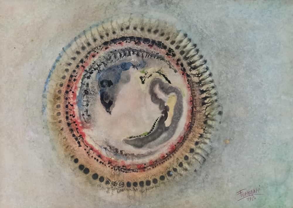 Tra realtà ed astrazione. Tra radiografie come ali di farfalla e galassie. Forme futuribili raccontano di una pittura colta, d’avanguardia, attenta allo spazialismo di Fontana, ma anche a Vedova, Turcato, Corpora.