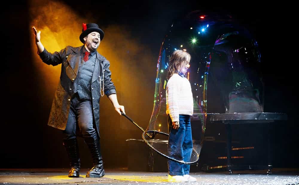 L’esperienza delle bolle di sapone appartiene al vissuto di ciascuno di noi e forse è uno dei primi affascinanti misteri che catturano la nostra fantasia. La meravigliosa perfezione della rotondità, la fragilità impalpabile, l’evanescenza della bolla sono elementi che, nonostante l’evoluzione tecnologica e l’avvento del digitale che pervade ogni aspetto delle nostre vite, mantengono un fascino unico che, nelle mani di Marco e Rolanda, diventano ingredienti di un’opera artistica sublime. A metà tra scultori d’arte e giocolieri di creazioni fantastiche i due artisti conducono il pubblico in un viaggio emozionante nel magico mondo delle bolle di sapone, una dimensione fantastica dove tutto è possibile e non esistono limiti all’immaginazione. “BuBBles Revolution non è uno spettacolo “di” bolle di sapone, ma è uno spettacolo “con” le bolle di sapone – racconta Marco Zoppi – Nello show utilizziamo le bolle non come fine, bensì come mezzo per raccontare una storia. E non intendo la storia mia e di Rolanda, ma quella di tutti noi. Perché è la storia di un’emozione che ci appartiene e che è tanto semplice quanto complicata da spiegare: lo stupore!”.