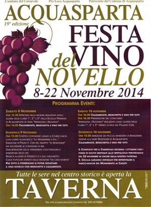 Acquasparta in provincia di Trani nella incantata Umbria si svolge la 19° festa del vino novello il programma degli eventi: