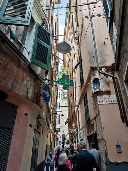 Il sole picchia sulle facciate color pastello di Via San Luca quando incontriamo la nostra guida (in seguito Rosaria) nel caldo pomeriggio del 26 aprile, in visita a Genova poco dopo il nostro arrivo in città. “Pronti a fare un salto indietro nel tempo?”, ci chiede, strizzandoci un occhio.