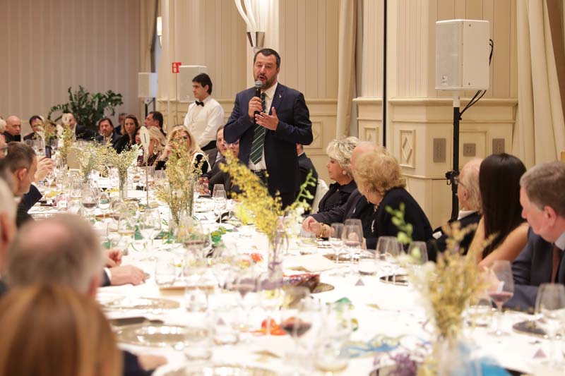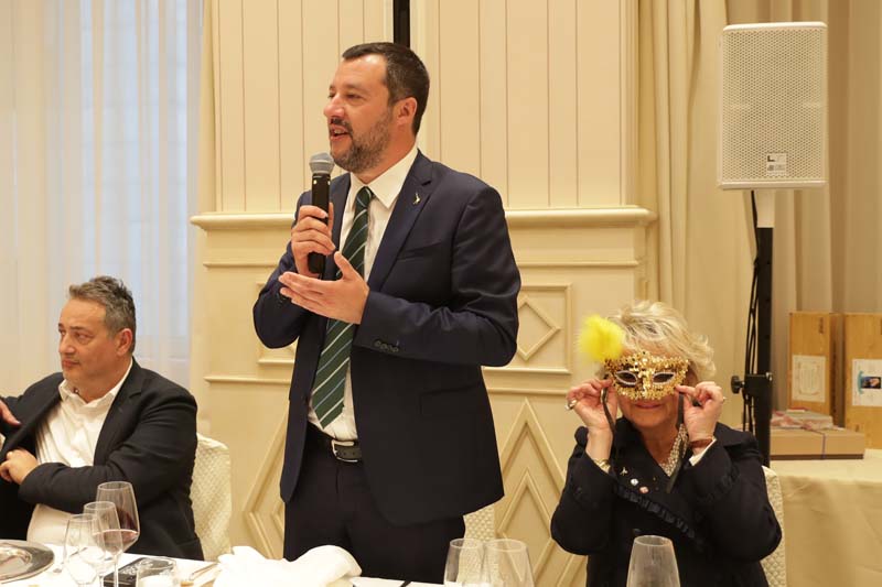 Daniela Javarone ha introdotto l’ospite d’onore ricordando il suo legame ventennale con gli Amici della Lirica. Salvini ha aperto il suo intervento con una battuta rivolta ai giornalisti: «Andavo alla Scala, quando avevo tempo. Adesso purtroppo… parlo con voi».