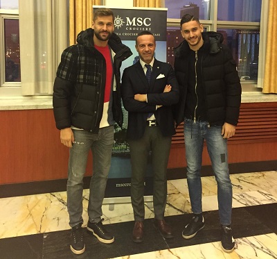 Presenti all’evento di presentazione alla stampa, i giocatori del club azzurro Fernando Llorente e Alex Meret, insieme a Francesco Manco, Area Manager Sud Italia di MSC Crociere e Alessandro Formisano, Head of Operation, Sales & Marketing di SSC Napoli.