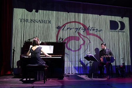 Aurora Ramazotti sale sul palco del ristorante argentino El Porteno Prohibido con la mamma Michelle per battere all’asta gli oggetti donati da Trussardi per promuovere il progetto “siamo unici” dell’Onlus Doppia Difesa. Completo rosso e fucsia per Michelle Hunziker che ha fatto gli onori di casa con il marito Tommaso Trussardi, nella giornata internazionale contro la violenza sulle donne, per raccogliere fondi dell’associazione che si batte contro la violenza sulle donne fondata da lei insieme all’avvocato senatrice Giulia Bongiorno. Tra i presenti Umberta Gnutti Beretta, Francesca Moratti figlia di Gianmarco e Lina Sotis, la marchesa Marta Brivio Sforza, Francesca Versace primogenita di Santo Versace, Donata Berger, Diana Palomba, l’influencer Roberta Ruie. Performance di tango ed esibizione del cantante napoletano Gregorio Renga, vincitore della prima edizione di All together now. Raffaella Parisi