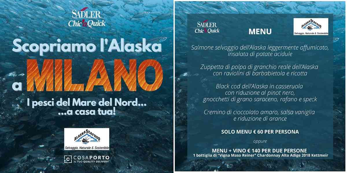 Tra le proposte stellate ce n’è una imperdibile, anzi due. Infatti, lo Chic’n Quick, Trattoria Moderna di Claudio Sadler, a Milano, ha organizzato un fantastico menu con i prestigiosi pesci dell’Alaska, menu che potrete gustare direttamente a casa vostra. Quando? Per ben due weekend di gennaio 2021: quello del 22/23/24 e quello del 29/30/31 gennaio.