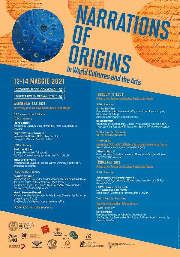 Dal 12 al 14 maggio 2021 sarà ospitato a Torino – con il patrocinio dell’Università di Torino e il sostegno del Dipartimento di Studi Umanistici, di Turismo Torino e Provincia e della Camera di commercio – il convegno internazionale della “European Society of Comparative Literature/ Société Européenne de Littérature Comparée ESCL/SELC” intitolato Narrazioni delle origini nelle culture del mondo e nelle arti. È organizzato e curato da Chiara Lombardi, docente di Letterature comparate all’Ateneo torinese, e da Cristiano Ragni, assegnista di ricerca all’Università di Genova.