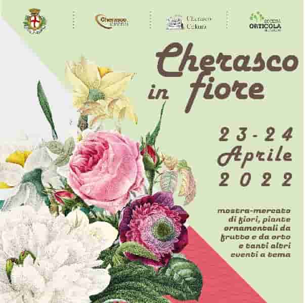 Per gli appassionati di piante, fiori e “garden design”, sabato 23 e domenica 24 aprile, ritorna l’appuntamento florovivaistico “Cherasco in fiore”, grazie alla collaborazione tra Società Orticola del Piemonte, Comune di Cherasco e Associazione Cherasco Cultura. Sarà un week-end avvolto da mille colori e profumi di fiori grazie ai numerosi stand che si affacceranno lungo la centrale via Vittorio Emanuele chiusa al traffico, dove sarà possibile acquistare bulbi e semi di fiori per il giardino, piante per la casa, oltre ad attrezzature e oggetti di design sempre legati al mondo florovivaistico. Saranno inoltre presenti banchi di vendita di prodotti alimentari tipici del territorio.