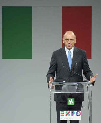 È toccato poi al Presidente del Consiglio, Enrico Letta, ribadire che «L’Italia riparte dunque dall’Expo del 2015, per guardare al mondo, grazie a un tema forte e condiviso: “Nutrire il Pianeta, Energia per la Vita”. «L’Expo sarà il cuore della ripresa del Paese – ha spiegato il presidente del Consiglio – a partire dalle tematiche: si legano a parole come ricerca, innovazione, sicurezza alimentare e toccano scenari globali che ci interessano, come le risorse idriche, la denutrizione e l’obesità». Il premier ha ribadito il sostegno del Governo per la riuscita della manifestazione: «Ai primi di settembre – ha aggiunto – ci sarà la firma e il lancio della agenda 2015 di tutti i ministeri in vista della manifestazione. Expo funzionerà se sarà l’Expo non di uno ma di tutti, di tutto il Paese: vuol dire impegnarsi tutti».