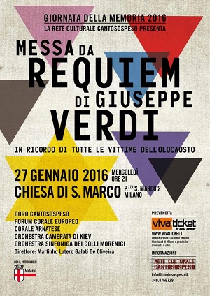 Nella Giornata della Memoria 2016 verrà eseguita la Messa da Requiem di Giuseppe Verdi, in ricordo di tutte le vittime dell’Olocausto.