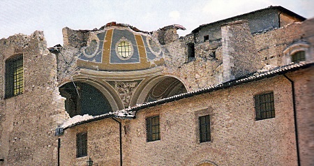 L’AQUILA – La scomparsa dell’importante manufatto non è dovuta al terremoto del 1703 e neppure al recente disastroso sisma del 2009, che ha letteralmente decapitata la chiesa (Fig.1 e Fig.2), per la quale, purtroppo, dopo otto anni, ancora non si nota un benché minimo cenno di ricostruzione. Esiste un testimone oculare d’eccezione che, intorno agli anni Sessanta del sec. XVIII, attesta la presenza dell’artistico monumento nella collegiata di Santa Maria Paganica. Si tratta dell’illustre cittadino aquilano Antonio Ludovico Antinori (1704-1778), benemerito storico di cose abruzzesi, nonché fedele servitore della Chiesa,per essere stato dal 1745 al 1757 arcivescovo di Lanciano e successivamente di Matera ed Acerenza.  Fig.2