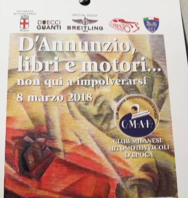 Linate l’8 marzo 2018 a cura del C.M.A.E. Automotoclub Storico Italiano si è svolto l’evento “D’Annunzio, libri e motori”:per portare i gioielli a quattro ruote di inizio Novecento nel cuore di Milano.