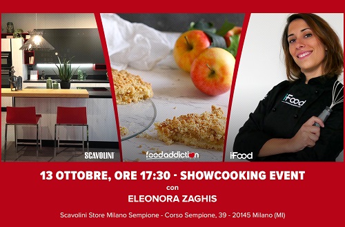 La foodblogger milanese Eleonora Zaghis porta nella sua amata città tutto il gusto del dolce. Il tour gastronomico FoodAddiction in Store fa tappa a Milano con uno showcooking gratuito e aperto al pubblico in programma sabato 13 ottobre a partire dalle 17:30 presso lo Scavolini Store Milano Sempione. Semplicità, gusto e croccantezza per un dolce tipicamente autunnale. Durante l’evento la blogger coinvolgerà il pubblico nella realizzazione di una torta sbriciolata a base di mele. Al termine, degustazioni gratuite per tutti gli ospiti… difficilmente ne rimarrà anche solo una briciola!