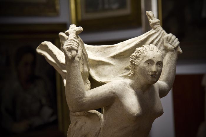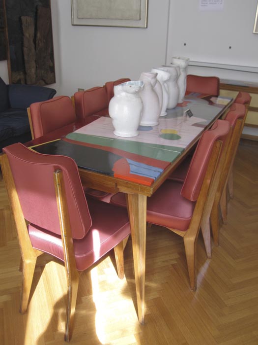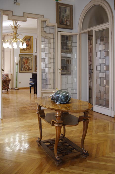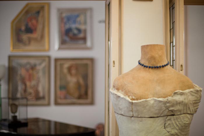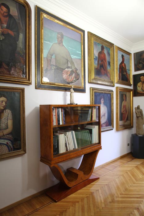 Salendo la bella rampa di scale (il corrimano e la ringhiera sono di una bellezza rara), al secondo piano, si trova l’appartamento di Marieda e Antonio. Spazioso, luminoso e dalla classica disposizione ordinata dell’epoca, questa Casa-Museo non è solo architettura, bensì raccoglie una delle collezioni d’arte private più vaste che abbia mai visto! Oltre duemila opere sono state donate da Antonio Boschi nel ’74 al Comune di Milano, di cui una selezione di circa trecento esemplari sono dal 2003 qui visibili al pubblico. Questa collezione rappresenta una testimonianza della storia dell’arte italiana del XX secolo, infatti spazia dal primo decennio del Novecento alla fine degli anni Sessanta. Nel 1998 nasce la Fondazione Boschi Di Stefano che, insieme al Comune di Milano, ha curato il restauro dell’abitazione. Nelle undici stanze le opere sono state collocate seguendo un criterio di successione cronologica. La visita è facilitata da pratiche schede di lettura con la specifica tecnica di ogni opera esposta. Purtroppo è rimasto poco degli arredi originali (va detto che i coniugi Boschi Sala SironiDi Stefano amavano talmente tanto l’arte che la parte degli arredi non è mai stato un punto di forza di questa casa – ndr), ma, con un grande sforzo e tanta ricerca da parte della Fondazione, oggi sono esposti nella Casa-Museo mobili e lampadari consonanti con lo stile dell’edificio e con le diverse epoche artistiche ivi riunite (stupenda la sala da pranzo progettata da Mario Sironi nel 1936). 19 1Le varie stanze, comunicano tramite bellissime porte a doppio battente e l’atrio d’ingresso è un trionfo di luce e forme geometriche tipiche del periodo. Nell’abitazione è possibile vedere diverse ceramiche della stessa Marieda che, al piano terra, aveva fondato una scuola artistica di ceramica. La passione per l’arte ha spinto i coniugi Boschi Di Stefano, come mi ha raccontato la Dott.ssa Francesca Paola Rusconi, Direttrice culturale della Fondazione, a “tappezzare” letteralmente l’intera dimora di opere d’arte. Pensate che hanno fissato dei quadri addirittura sui battenti delle porte! Ma gli aneddoti non finiscono qui, l’Avv. Ezio Antonini, Presidente della Fondazione, mi ha raccontato che Marieda ed Antonio portavano a casa le opere ancora umide onde evitare che venissero vendute prima ad altri. Potremmo scrivere un libro sulla storia di questa fantastica coppia, ma adesso voglio percorrere con voi un viaggio ideale in questa incantevole Casa-Museo, partendo dalla cosa più importante, la disposizione delle opere.