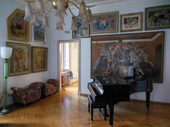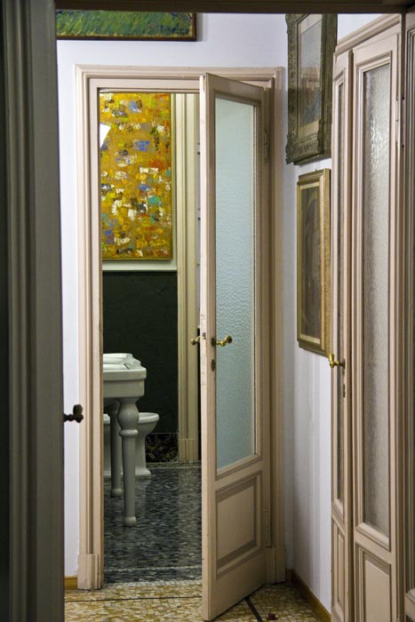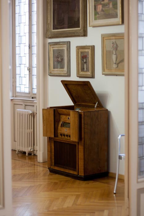 Subito dopo si entra nella “sala Sironi”, interamente dedicata all’artista (belle le sculture di Arturo Martini). Pochi passi dopo la mia preferita, che comprende opere del “Gruppo di Corrente”, sette Morandi e sei de Pisis. I Chiaristi sono concentrati in un piccolo corridoio mentre nell’ambiente successivo troviamo gli “Italiens de Paris”: Campigli, Paresce, Savinio e De Chirico. La “sala Fontana” racchiude una preziosa raccolta di venti opere, mentre le ultime due stanze sono dedicate ai postcubisti picassiani, ai nucleari, agli spazialisti e ai pittori informali (meritano i due Achrome di Piero Manzoni). Molti dei quadri della collezione sono esposti al Museo del Novecento, aperto al pubblico dal 2010. La casa si completa di un bellissimo pianoforte a coda Bechstein, alcuni violini che Antonio Boschi amava suonare, preziosi lampadari di epoche diverse (veramente originale, nell’ultima stanza, il lampadario dell’Arch. Alessandro Mendini, nipote dei coniugi Boschi – ndr) ed arredi originali come il panchetto dell’ingresso e il radiogrammofono prodotto dalla “IMCA Radio” di Alessandria. Presso la Casa-Museo sono presenti “quaderni tematici” che possono aiutare i visitatori a comprendere ancora meglio le opere, gli arredi e degli album con foto della famiglia. Vi consiglio una visita al sito www.fondazioneboschidistefano.com, ma soprattutto ad una visita di persona alla bellissima residenza, ricca di dettagli tutti da scoprire!