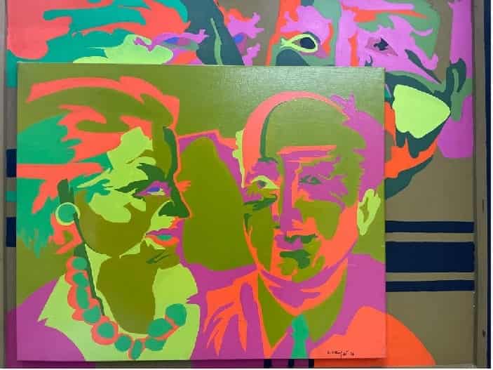 Nella foto, una delle opere di Artias in mostra: “autoritratto con Lydia”
