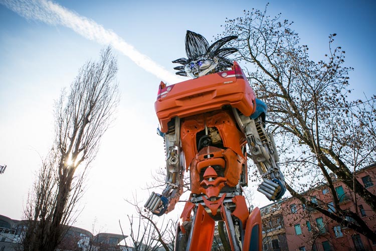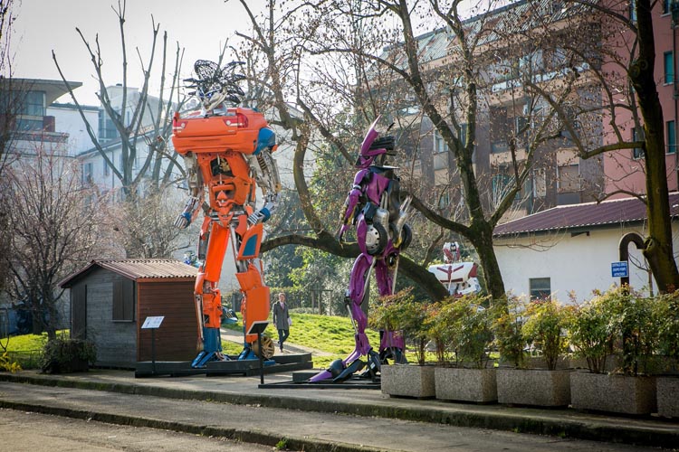 Ispirate ai celebri alieni robotici che diventano mezzi di trasporto, le otto sculture metalliche di Transformers Art, alte da tre a otto metri, sono realizzate dall’artista montenegrino Danilo Baletic con materiali recuperati nelle discariche, con l’intento di attirare l’attenzione sul tema dei rifiuti come risorsa.
