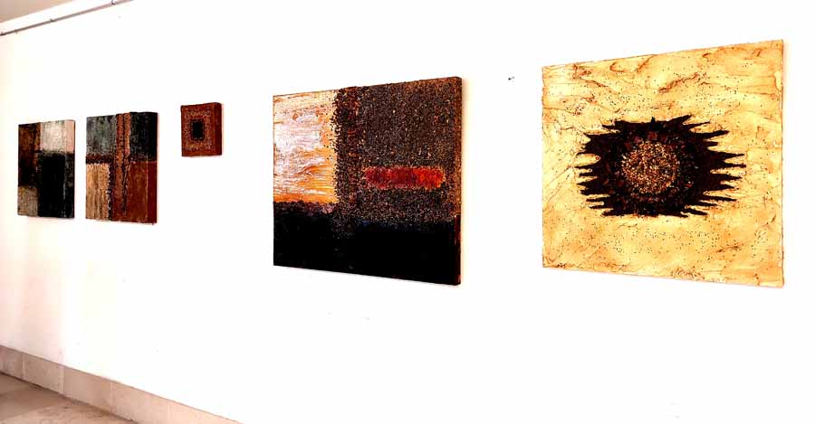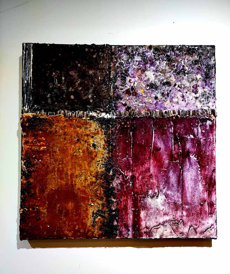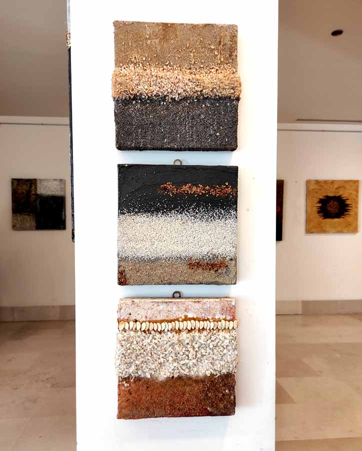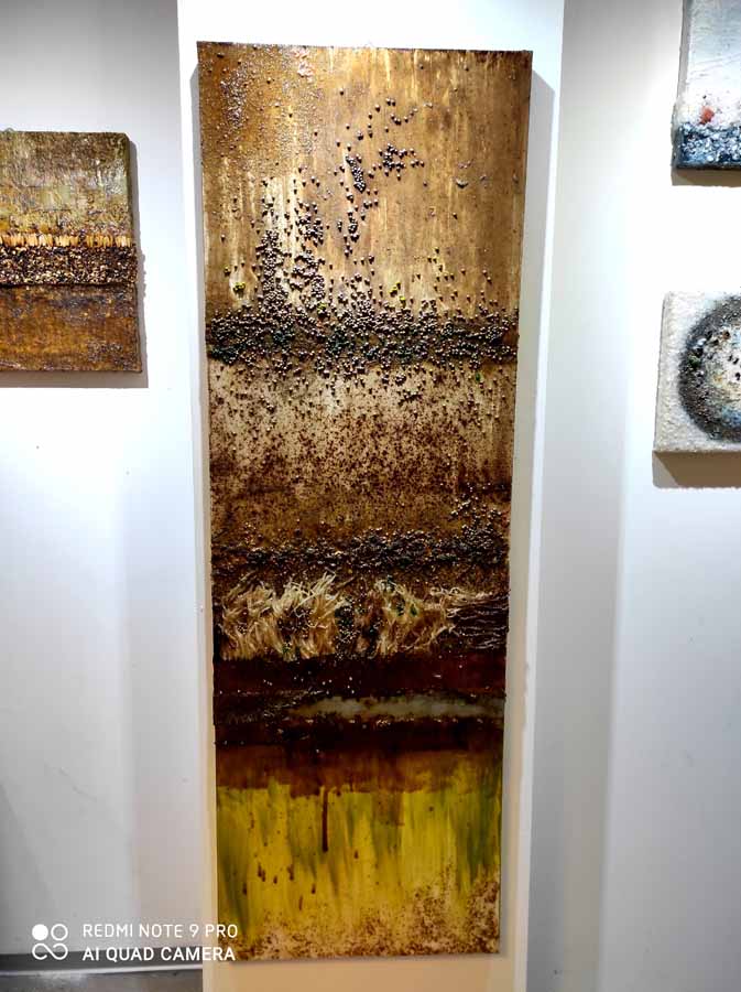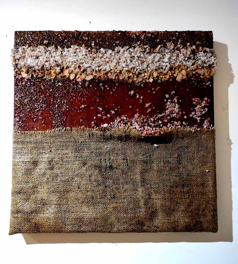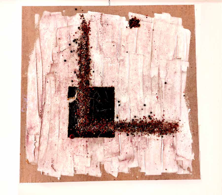 Cannella, peperoncino, chicchi di caffè, semi di papavero si mescolano al curry e all’anice in un concentrato di forme, colori e profumi che inducono lo spettatore a farsi catturare dall’opera stessa, evocando ricordi di viaggi ed esperienze passate.