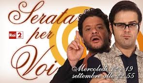 Mercoledì 12 e 19 settembre 2012 su Rai2 alle 22.55, Lillo & Greg scriveranno il nuovo paradigma dell’interpretazione della televisione: “brutta televisione di adesso” con il programma “Serata per voi” e lo faranno in due serate in cui dissacreranno, attraverso una incalzante serie di macchiette e stereotipi, i personaggi che frequentano quotidianamente gli schermi di tutte le reti nazionali e locali.