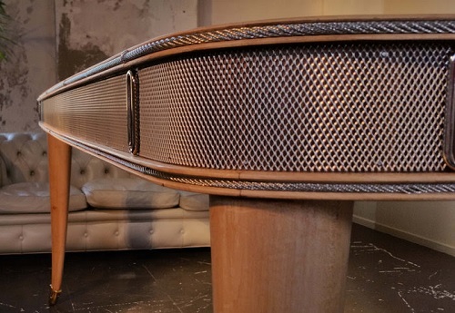 Laccato con vernice epossidica presenta un decoro a pois sul piano che illumina e movimenta la superficie.