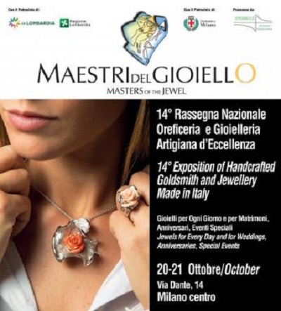 Sabato 20 e Domenica 21 Ottobre 2018 in Via Dante, 14 Milano centro(fermata Metrò Cairoli – Castello Sforzesco): Maestri del Gioiello – Masters of the Jewel – Rassegna Nazionale di Oreficeria e Gioielleria Artigiana d’Eccellenza (14° edizione) In occasione della Milano Fall Design Week Presentazione di gioielli realizzati da maestri orafi e artigiani produttori di gioielleria Presentazione di gioielli per “Matrimoni, Anniversari, Eventi importanti” Presentazione di pezzi unici realizzati per il tema del Concorso – Premio Jacopo da Trezzo 2018 “Il Design nel Gioiello”- in occasione della Milano Fall Design Week 2018