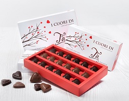 Una “romantica” scatola da degustazione, perfetta come regalo di San Valentino, disponibile nella versione da 10 o da 18 cuoricini di cioccolato con cacao Gran Cru venezuelano 40% latte e 66% fondente.