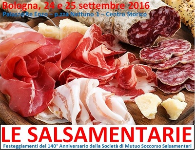 Bologna, 24 e 25 settembre 2016, Palazzo Re Enzo, P.zza del Nettuno 1: attesi più di 20.000 visitatori per il famoso evento enogastronomico “Le Salsamentarie”, che vedrà ai fornelli e alle affettatrici gli storici appartenenti alla Società Salsamentari 1876, la più antica associazione esistente nell’arte della salumeria e della casearia. STAY TUNED