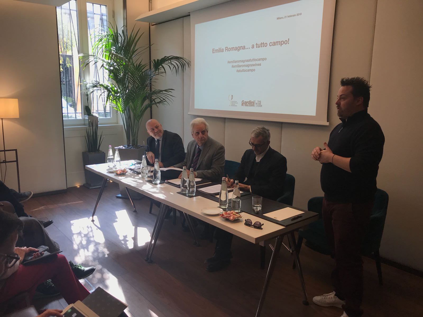 A Milano il 21 febbraio 2018, in via Andegari da Mandarin Oriental presentato alla stampa il progetto EMILIA ROMAGNA…A TUTTO CAMPO Un progetto di comunicazione e promozione del vino emiliano romagnolo in Italia e nel mondo a cura di Enoteca Regionale Emilia Romagna e Luca Gardini. Il Progetto: nasce un nuovo format dedicato alla comunicazione e alla promozione dei vini emiliano romagnoli attraverso la metafora del calcio. Il progetto di sviluppa in tre grandi momenti. Il primo vede protagonisti un gruppo di professionisti degustatori di vino, giornalisti e comunicatori italiani e stranieri, che si riuniranno per assaggiare alla cieca ciascuno una tipologia di vino. Quello che accomuna le differenti tipologie è di derivare tutte da un vitigno autoctono dell’Emilia Romagna. Lo scopo della degustazione sarà redigere undici squadre “monovarietali” dei migliori assaggi secondo ciascun degustatore. I risultati verranno svelati da Gazzetta dello Sport, in occasione di Vinitaly 2018 come un vero e proprio campionato a squadre. Seguirà nel corso della seconda parte del 2018 un evento di degustazione con protagonisti tutti i vini che hanno aderito all’iniziativa; sarà aperto al pubblico dei winelover con degustazioni libere e guidate con focus mirati a conoscere più da vicino le varietà in questione. Per tutto l’anno l’Emilia Romagna e i suoi vini verranno raccontati su web attraverso i principali social network e il blog di Enoteca Regionale Emilia Romagna. Quali sono i principali attori: In primis Enoteca Regionale Emilia Romagna, ovvero l’associazione di produttori che, dal 1978, si dedica alla promozione e alla valorizzazione dei vini della regione. Il suo scopo è che la qualità raggiunta dall’enologia emiliano romagnola trovi il meritato riconoscimento in campo nazionale e internazionale. Enoteca si occupa, inoltre, della diffusione di una corretta educazione al bere, partecipa alle principali fiere di settore ed organizza numerose iniziative promo-commerciali. La sede all’interno della Rocca Sforzesca di Dozza (BO) ospita una Mostra Permanente di circa 1.000 etichette emiliano romagnole e propone percorsi di degustazione e formazione, nonché vendita diretta dei vini al pubblico.