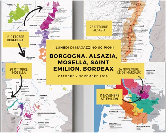 Il 14 Ottobre apriamo con un grande amore, la Borgogna, ma questo accenno non basta più, la Borgogna è immensamente varia, detiene il primato di AOC per la Francia e la bellezza non si esaurisce mai. Per questo primo appuntamento partiamo dal Nord, nello Chablis, con Chardonnay dai sentori floreali inaspettati, pronti ad incontrare una vigna vecchia, dalla cremosità importante e una nota di burro crudo sul finale. Il 28 ottobre, ascoltiamo le note misteriose ed eleganti del Riesling, viaggiando in due territori d’eccellenza, Alsazia e Mosella. L’11 Novembre, scendiamo nella Valle della Dordogna, dove le dolci acque del torrente Barbanne, ci condurranno tra le colline di Saint-Émilion. Una graziosa città medievale, classificata dall’Unesco Patrimonio dell’Umanità, di cui conosceremo entrambe le AOC, Saint-Emilion e Saint-Emilion Grand Cru. Il 24 novembre, chiudete gli occhi, e riapriteli su una vigna piccola quanto un’isola, l’Île de Margaux. Per noi romani, è come immaginare di vedere l’Isola Tiberina punteggiata di vitigni. Un piccolo capolavoro della natura di Bordeaux, portato avanti dalla preziosa strategia di salvaguardia, voluta dal suo proprietario Gerard Favarel.