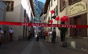 LA SAGRA DEI CROTTI Dalla metà circa degli anni ’50, settembre vede svolgersi a Chiavenna la “SAGRA DEI CROTTI”, manifestazione voluta per valorizzare, far conoscere e tramandare la tradizione del crotto. Nel corso dell’anno i proprietari usano aprire i loro crotti privati per trascorrervi in compagnia alcuni momenti conviviali, inoltre, parecchie associazioni di volontariato della Valchiavenna attive in vari settori, dal sociale, allo sportivo, al culturale, aprono solo in questa occasione al pubblico e gestiscono alcuni crotti (di proprietà privata) finanziando così con i proventi le loro attività. Tra questi crotti, alcuni sono inseriti nei percorsi “andèm a cròt”, mentre altri possono essere frequentati come normali ristoranti ed offrono il menù tipico del crotto con prodotti e prezzi concordati con il comitato organizzatore.