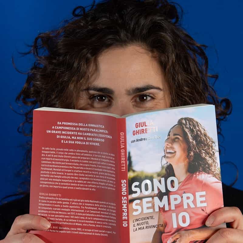 La storia di Giulia Ghiretti è divisa in due parti. La prima inizia nel 1994 quando viene al mondo e finisce nel 2010, anno del fatale incidente durante un esercizio al trampolino che la costringerà alla sedia a rotelle. La seconda parte inizia nel 2010, anno della sua rinascita: e proprio a questo secondo capitolo della vita di Giulia è dedicato il libro “Sono sempre io”, scritto a quattro mani con Andrea Del Bue.