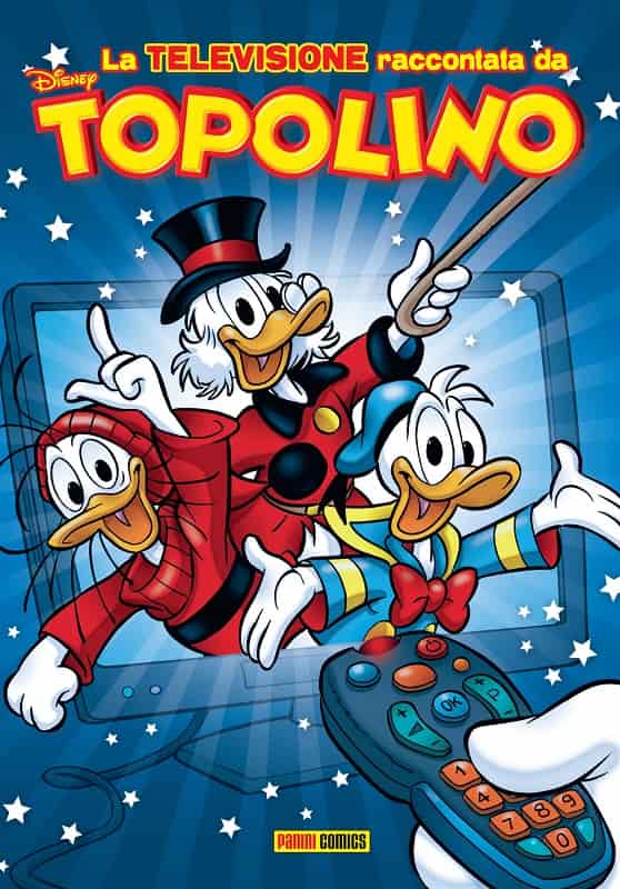 Il 2024 si apre con scintillanti e coloratissime celebrazioni per la TV italiana. Il 3 gennaio 1954, infatti, iniziava il regolare servizio di trasmissioni televisive. In occasione di questa ricorrenza “rivoluzionaria”, con Topolino arriva un nuovo TopoLibro da collezione per tutti gli amanti del piccolo schermo: La televisione raccontata da Topolino. Questo volume speciale raccoglie una serie di avventure con i personaggi Disney dentro e fuori dal piccolo schermo, in un viaggio tra passato e presente, curiosando tra format (dal quiz al reality show, passando per le grandi kermesse musicali) e incontrando tante guest star d’eccezione. A rendere ancora più prezioso La televisione raccontata da Topolino, la prefazione scritta da Fiorello. La televisione raccontata da Topolino è disponibile in edicola, in fumetteria con Topolino 3554 (da mercoledì 3 gennaio) e acquistabile anche su Panini.it.