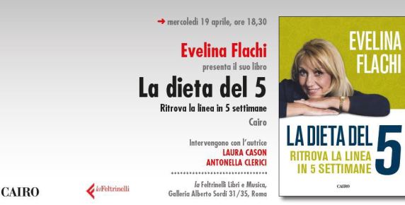 Roma: alla Feltrinelli Libri e Musica in Galleria Alberto Sordi al 33, mercoledì 19 aprile 2017 alle 18,30 si è svolta la conferenza stampa di presentazione del nuovo libro Con La Dieta del 5 di Cairo Editore.