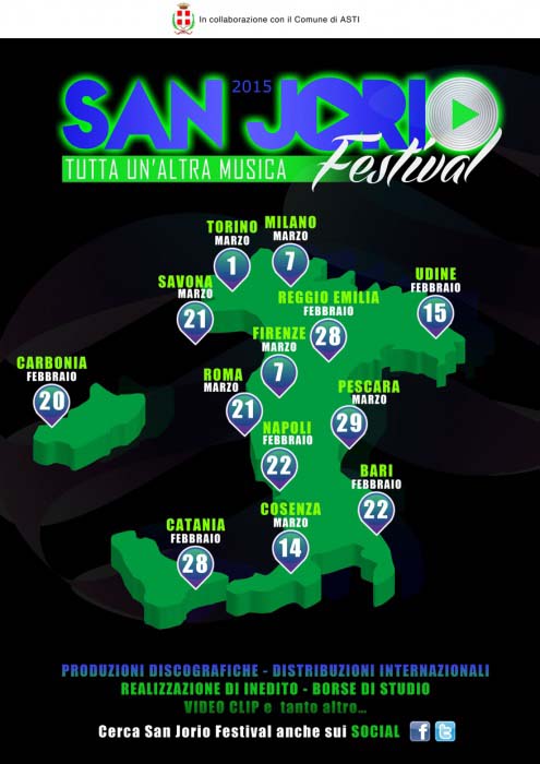 Domenica 15 febbraio al The Groove Factory di Martignacco (UD) (Via Antonio Bardelli 4) ci sarà la prima tappa di audizioni per il “SAN JORIO FESTIVAL – Tutta un’altra musica” il concorso canoro nato da un progetto dell’Associazione Borgo San Jorio Sacro Cuore di Asti e sotto la direzione artistica di Fabrizio Rizzolo.