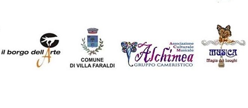 GRUPPO CAMERISTICO ALCHIMEA: Il Gruppo Cameristico Alchimea nasce a Torino nel 2001 con l’intento di riunire musicisti di formazione classica dallo spirito innovativo e aperto alla ricerca di nuove contaminazioni e con il desiderio di suonare repertori dal carattere diverso. I componenti, attivi nella scena internazionale come solisti e membri di spicco di formazioni cameristiche e orchestrali, si sono brillantemente diplomati nei principali conservatori di musica italiani e perfezionati nelle più prestigiose accademie europee (Accademia dell’Orchestra Filarmonica della Scala, Musik Akademie Der Stadt Basel, Accademia “Walter Stauffer” di Cremona, Ecole Normale de Musique “A. Cortot” di Parigi, corsi di perfezionamento orchestrale di Salisburgo dei Wiener Philarmoniker, Conservatorio Superiore di Ginevra…). Il Gruppo è Ensemble Residente della Rassegna Concertistica “Musica: Magia dei Luoghi”, itinerario tra Musica, Arte e Architettura nel Centro Storico di Torino e della XXX e XXXI Edizione del Festival Internazionale di Villa Faraldi; nel 2011 ha festeggiato il decennale di attività con un concerto al Teatro Carignano di Torino. Nel 2009 è stato pubblicato il CD dal titolo “La Loggia delle Fate” con musiche d’ispirazione celtica e brani inediti composti appositamente per l’Ensemble in occasione della Prima Edizione 2008 della Rassegna Concertistica “Musica: Magia dei Luoghi”. Il Gruppo Cameristico Alchimea si propone con formazioni che vanno dal trio all’orchestra da camera presentando programmi che spaziano dalla musica antica e barocca al Romanticismo, dalla musica francese e italiana tra Ottocento e Novecento alle composizioni contemporanee, dal jazz alle atmosfere celtiche, approfondendo sempre con dedizione sia l’aspetto espressivo sia il contenuto tecnico dei brani interpretati. L’anima di questo progetto è riscoprire la gioia di suonare insieme senza porsi vincoli formali e limiti stilistici, giocando con il carattere universale del linguaggio musicale. www.alchimea.it
