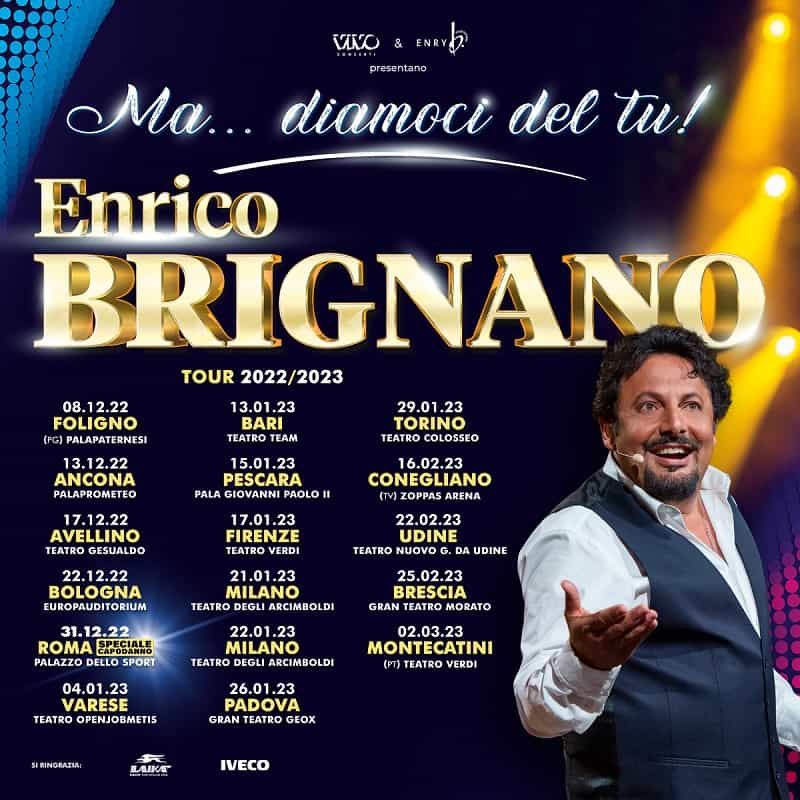 Dopo il grande successo del tour estivo in tutta Italia e dell’annuncio della speciale data di Capodanno, Enrico Brignano annuncia il tour invernale di “MA… DIAMOCI DEL TU!” , prodotto e organizzato da Vivo Concerti e in partenza giovedì 8 dicembre.