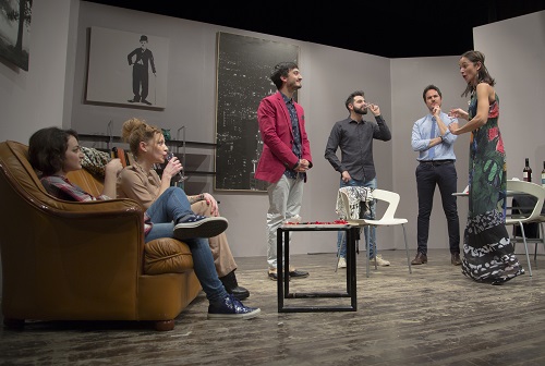 L’analisi della vita reale partendo da situazioni surreali, nella stagione del Martinitt arriva al culmine con una commedia che vede protagonisti sei giovani, in qualche modo già vecchi. Arrampicatori, millantatori, esibizionisti si nascondono dietro sorrisi di convenienza, raccolti attorno a una scala che è metafora di percorsi personali in salita e in discesa, comunque ad ostacoli. In scena dal 16 marzo al 2 aprile. Una di quelle serate inquietanti che… anche no grazie. Una di quelle cene dove si parla di tutto e non accade niente. Una reunion tra vecchi amici, di cui però non c’importa nulla. Una di quelle occasioni esasperanti, infinite e vuote, da paresi alla mascella per il troppo, forzato sorridere. Una situazione di convenienza che più sconveniente non potrebbe essere. A chi non è mai capitato? Di certo capita alle tre coppie di una commedia che suscita empatia nel pubblico, indipendentemente dall’età e dallo status sociale. Divisa tra risa e compassione, la sala segue i non-destini di sei personaggi che contano più della storia in sé. Gente come noi che dietro uno schermo di moine e formalità, si scruta, si giudica, si soppesa in un equilibrio precario di banalità, invidie, ambizioni e malcelato fastidio, che ben presto sfocia in un rancore represso troppo a lungo. Attorno a un pretesto qualsiasi, si sfaldano unioni superficiali, escono scheletri dagli armadi, spuntano segreti e tutto si fa rabbia e rancore. Da una calma apparente a un vero e proprio ciclone, che tira fuori la parte animalesca dell’uomo, in cerca di un motivo qualsiasi per litigare, rinfacciare, aggredire. Con le situazioni cambiano anche gli atteggiamenti e così i sei da amici diventano nemici, per poi rifarsi branco di fronte all’emergenza e alla necessità…