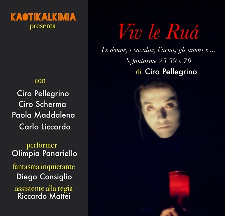 Le donne, i cavalier, l’arme, gli amori e…25, 59 e 70  Una drammaturgia di Ciro Pellegrino. Con, Ciro Pellegrino, Paola Maddalena, Ciro Scherma, Carlo Liccardo, Olimpia Panariello, Diego Consiglio. Costumi e scenografia Alkimia 61. Assistente alla Regia, Riccardo Mattei. Regia, Ciro Pellegrino. Una produzione Gruppo KaotiKimia. La Storia di Napoli, attraverso le sue leggende.