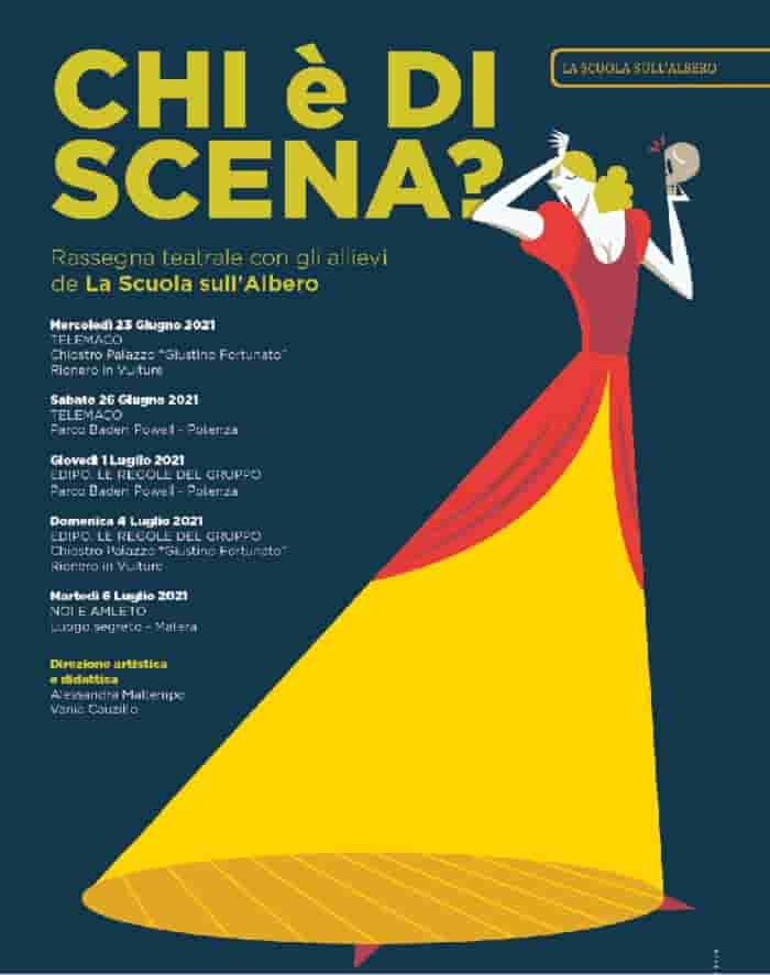 Si proseguirà con “Edipo. Le regole del gruppo” di Riccardo Spagnulo, che vedrà impegnati i due gruppi di adolescenti il 1° luglio a Potenza e il 4 luglio a Rionero. Infine, a chiusura della rassegna, il gruppo adulti con lo spettacolo “Noi e Amleto”, il 6 luglio a Matera. Per tutti gli spettacoli è obbligatoria la prenotazione al numero 380/7955722. Per maggiori informazioni su “Chi è di scena?” è possibile visitare la pagina Facebook “La Scuola sull’Albero”, telefonare al numero 349/8243232 o scrivere all’indirizzo e-mail info@lalbero.org.