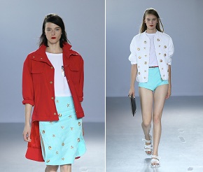 Essenziale, elegante e marina: questa è la quintessenza della collezione per la Primavera Estate 2014 di Frankie Morello. L’ispirazione viene dal lavoro di grandi artisti del passato: dalle ceramiche di Fornasetti ai dipinti emblematici di Maurits Cornelis Escher, passando per i gioielli di Fulco di Verdura, il duca siciliano che disegnava per le star degli anni ’20. La collezione firmata da Maurizio Modica e Pierfrancesco Gigliotti è pensata per una donna concreta e con i piedi per terra che affronta la quotidianità con uno spirito combattivo. Gonne a tubino con spacchi vertiginosi, camicie bon ton, giubbottini corti, ma anche abiti leggeri o top che lasciano scoperta la pancia e pochissimi centimetri di pelle, grazie anche alla vita alta di pantaloni e gonne. La moda di Frankie Morello è la moda dei contrasti, dove mix diversi vivono insieme per un risultato finale molto particolare e originale: la gonna con spacco in abbinamento alla felpa casual con il nome del marchio scritto in bella vista, ma anche i sandali bassi che sembrano arrivare dal guardaroba degli uomini. Deliziosi gli accessori, come gli occhiali da sole oversize e da diva o le borse, che si fanno piccole e si portano a mano, con colori anche molto intensi come il rosso fuoco.