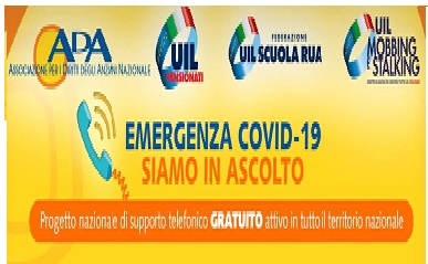 “Siamo in ascolto” è il servizio di supporto telefonico gratuito attivato su tutto il territorio nazionale da Uil Pensionati, Uil Scuola Rua, Uil Mobbing e Stalking e Ada – Associazione per i diritti degli anziani, rivolto ai cittadini che in questo periodo di emergenza sanitaria necessitano di assistenza psicologica, alle persone in quarantena, gli operatori sanitari e a chi vive situazioni di conflittualità dentro le mura domestiche.