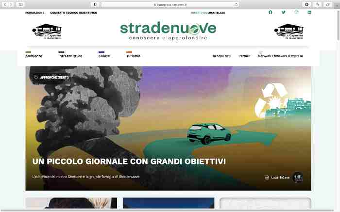Il ciclo dei rifiuti e il traffico di quelli tossici, infrastrutture sicure e sostenibili per l’ambiente, l’economia e la qualità di vita delle persone, gli effetti della pandemia su bambini e ragazzi e sulle donne, il turismo che volta pagina. Iniziano da qui i sentieri verso un’informazione di qualità tracciati da Stradenuove (stradenuove.net) nuova testata giornalistica indipendente on line, edita da Phacelia e diretta dal giornalista Luca Telese.
