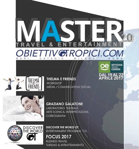 Tempo di formazione per gli operatori turistici che possono partecipare alla seconda edizione del master organizzato da Obiettivo Tropici in Puglia. Si tratta di una quattro giorni altamente specializzata dedicata all’intrattenimento che si terrà dal 19 al 22 aprile 2017 a Bari. Lo scopo sarà quello di analizzare le dinamiche di percorsi innovativi, conoscere i nuovi progetti della stagione 2017 promossi dai tour operator con i quali Obiettivo Tropici collabora da anni. Sarà anche l’occasione per confrontarsi con esperti del settore e condividere esperienze, idee e know how all’insegna dello scambio e della collaborazione reciproca. Lo scopo del master è offrire ai partecipanti l’opportunità di migliorare ed accrescere il bagaglio di conoscenze, ampliando la visione d’insieme di un settore, quello turistico, in mutamento costante. Il risultato sarà una sempre maggiore professionalizzazione delle varie specializzazioni che operano nell’ambito dell’intrattenimento. La parte teatrale sarà seguita da un insegnate d’eccezione, Graziano Galatone, che proviene da una lunga esperienza internazionale, già protagonista della versione italiana di Notre Dame de Paris. L’agenzia Thelma&Friends, invece, si occuperà dell’aspetto creativo, legato al mondo dei social e dell’immagine (video e fotografica). Questa edizione sarà ulteriormente arricchita dal coinvolgimento dei partecipanti al master, come special guest, nel Bari-Vivi Città del 22 aprile.