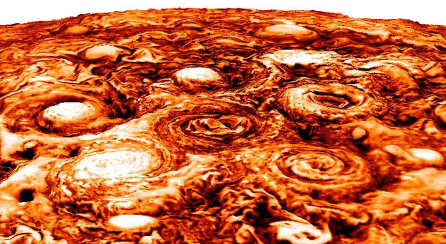 Data collected by atmospheric winds to Jupiter indicate that the atmospheric winds of the gas-giant planet run deep into its atmosphere and last longer than similar atmospheric processes found here on Earth. The findings will improve understanding of Jupiter’s interior structure, core mass and, eventually, its origin. Other Juno science results released today include that the massive cyclones that surround Jupiter’s north and south poles are enduring atmospheric features and unlike anything else encountered in our solar system. The findings are part of a four-article collection on Juno science results being published in the March 8 edition of the journal Nature.”These astonishing science results are yet another example of Jupiter’s curve balls, and a testimony to the value of exploring the unknown from a new perspective with next-generation instruments.Juno’s unique orbit and evolutionary high-precision radio science and infrared technologies enabled these paradigm-shifting discoveries,” said Scott Bolton, principal investigator of Juno from the Southwest Research Institute, San Antonio.