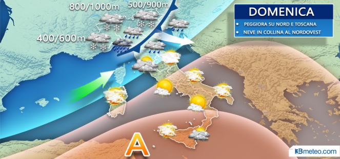 3BMETEO.COM: “Domenica torna il maltempo: PIOGGIA e NEVE”