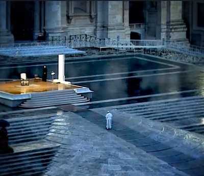 E Lui si stava offrendo per l’umanità intera, invisibile davanti agli schermi dei continenti. Sopra la piazza ora la pioggia diluviava. Il selciato ed il cielo diventavano sempre più neri. Poi al termine di una lunga e silenziosa immobilità, Lui si scosse per riemergere al tempo come da abissi di interiore, spirituale angoscia. Io ripensavo, guardandolo, a papa Montini, quando le Brigate Rosse uccisero Aldo Moro. Egli aveva pregato fortemente per la sua salvezza, senza averne risposta. “Tu o Dio non mi hai ascoltato”, gridò al cielo e sulle sue labbra apparve come un rimprovero disperato, un pianto irrefrenabile, singhiozzi che squarciavano il petto. No, non veniva meno la fede, se a vincere fu allora la delusione. Non si crede in Dio perché egli ci sovviene nelle nostre urgenze, si crede in lui perché si è consapevoli del suo amore, i cui percorsi non sempre seguono i nostri. Il vecchio papa ora si alzava a parlare.