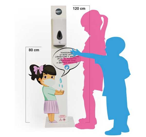Se tra le mura domestiche il consiglio degli espertiè quello di invitare i bambini a lavarsi le mani cantando una canzoncina, cosa avviene fuori casa? La risposta arriva dall’amministratore delegato di Eurostands Maurizio Cozzani “Utilizzare i gel igienizzanti, disponibili all’ingresso e all’uscita di supermercati e negozi, è centrale per tutelare la salute della collettività, ma spesso i distributori si trovano ad altezze non raggiungibili per i bambini, anche in luoghi da loro frequentati come librerie e negozi di giocattoli. Da qui l’idea di rivolgersi anche ai più piccoli con prodotti ad hoc in grado di dialogare con loro e rendere più facile e divertente lo svolgimento delle numerose pratiche da seguire”.