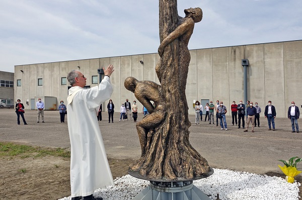 La benedizione è stata impartita da don Maurizio Viviani, direttore del Museo diocesano d’arte di Verona, che ha brevemente ricordato Papa Wojtyla e illustrato le figure che danno vita alla croce alta ben 18 metri, opera dello scultore Romano Andrea Trisciuzzi e fortemente voluta da Mirko Zanini, presidente dell’Associazione culturale “Totus Tuus”. Un’opera d’arte, ma anche un’opera di ingegneria: le figure sono scolpite in una resina a elevata resistenza e sostenute da un palo di metallo e carbonio, che garantisce stabilità a tutta la struttura. La croce si potrà ammirare sul Faloria a ricordo di un apostolato, che ha segnato le sorti del mondo. Qui, infatti, sulle montagne tanto care al Papa polacco, verrà posizionata la croce da egli stesso commissionata allo scultore: avrebbe dovuto svettare già da oggi se la pandemia non avesse condizionato i tempi per la sua definitiva collocazione in alta quota.