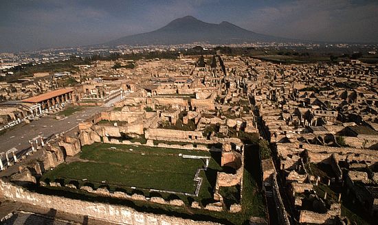 A Pompei, l’antica città è stata quasi completamente dissepolta, tranne alcune Regiones.