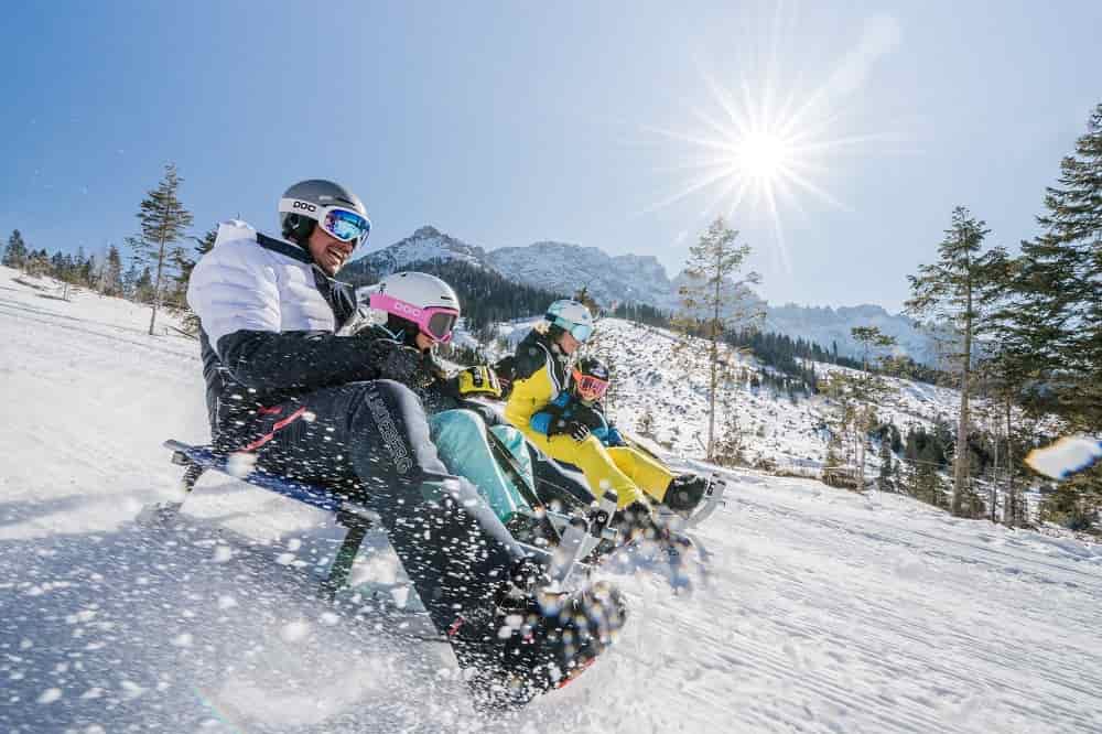 E per i non sciatori? Oltre ai tanti rifugi con il meglio della gastronomia ladina e trentina, le ciaspolate dal Ciampedìe al Gardeccia e al Ciampac, dove è stato allestito un nuovo giro ad anello di cinque chilometri. Avventure in slitta a Carezza, con la pista dedicata lunga un chilometro che prevede ritorno senza fatica in cabinovia. Immancabile, poi, un brindisi sul Sass Pordoi, per ammirare l’Enrosadira da un punto di vista davvero speciale.