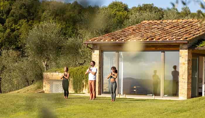 A pochi passi, The Club House cambia prospettiva. È più raccolta, più silenziosa, adults only e con sole quindici camere. Qui il silenzio diventa parte dell’esperienza e il wellness si trasforma in un viaggio interiore tra idroterapia, sauna, bagno turco, tepidarium, kneipp, yoga e trattamenti personalizzati, con piscina esterna sospesa sulle colline.