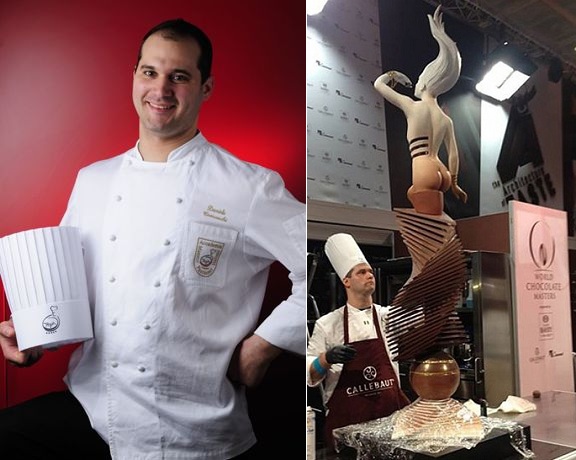 Milano, 1 Novembre  2013 – È un italiano (più precisamente, un milanese) il cioccolataio più bravo del mondo: Davide Comaschi (della Pasticceria Martesana) con le sue eleganti sculture di cioccolato, le praline, i dessert al piatto e le torte ha vinto la più importante competizione internazionale di settore, il World Chocolate Masters, il prestigioso campionato che incorona ogni due anni il miglior cioccolataio del mondo che si è appena chiuso a Parigi. Per la prima volta a vincere è un italiano: Comaschi aveva vinto il titolo di campione italiano al Sigep di Rimini lo scorso gennaio, candidandosi così a rappresentare l’Italia al campionato mondiale che ha visto sfidarsi i più grandi artisti del cioccolato davanti a una giuria internazionale. Tema di quest’anno, l’architettura del gusto. Da gennaio a ottobre Davide ha lavorato a tempo pieno alle sue pièce, alle praline, al dessert e alla torta in un laboratorio a ingresso riservato, per mantenere il segreto in vista della competizione.